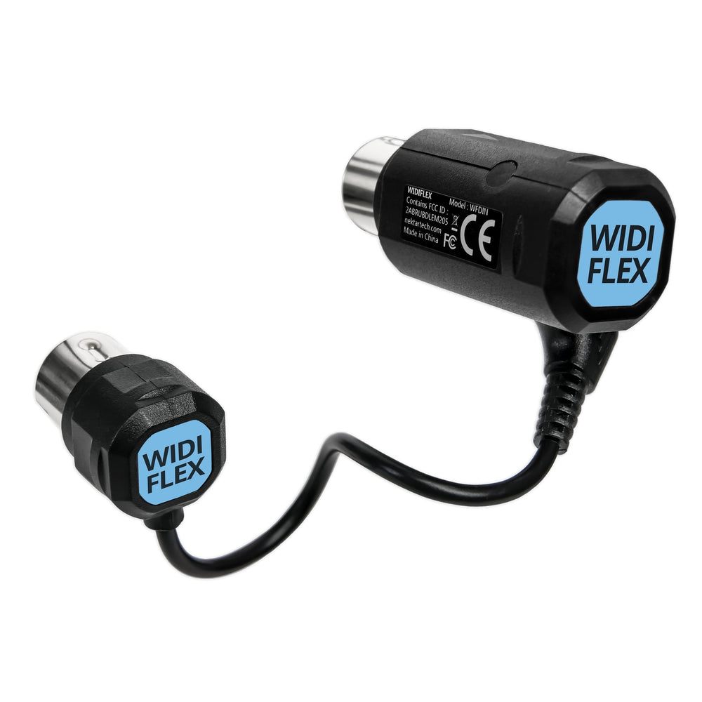 Introducing Nektar WIDIFLEX Bluetooth Adapter for MIDI Devices, a pair of MIDI DIN plugs with integrated Bluetooth functionality in the larger plug that links to your MIDI Out socket. No external power source required; WIDIFLEX draws power from your gear’s MIDI Out socket.