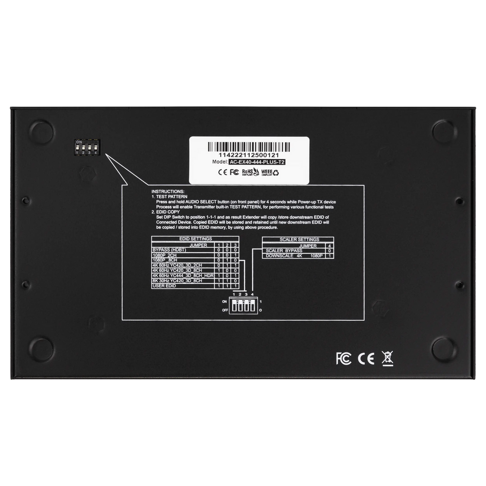 - Downscaling: Transmitter can downscale 4K and HDR to 1080p for mixed display environments.