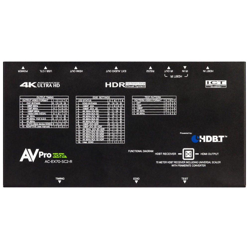 The AVPro Edge AC-EX70-SC2-R is a long distance HDBaseT receiver and scaler built for professional AV video distribution where picture stability matters. It is designed to help integrators deliver the best possible image to a wide range of displays while maintaining reliable 4K HDR performance.