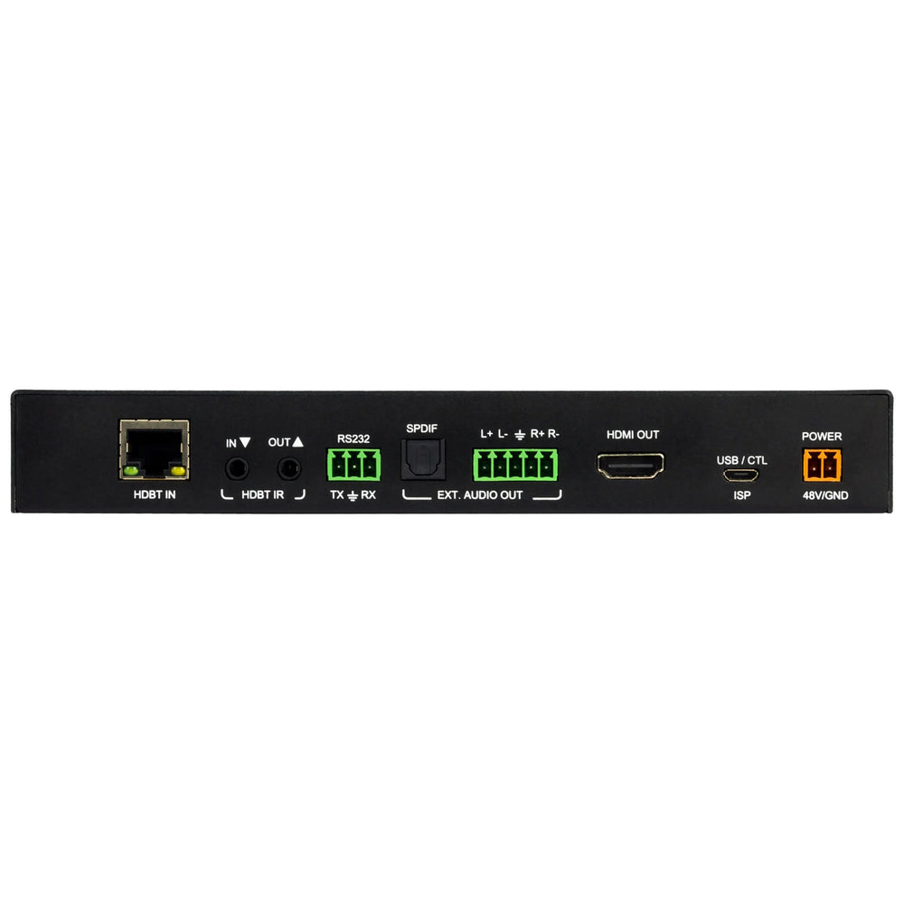 This HDBaseT receiver scaler supports 18Gbps 4K HDR signaling and gives you control over fixed output up and down scaling to match the display requirements. It also provides advanced EDID handling, including 4K HDR EDID options, and enables audio access from the stream when needed.