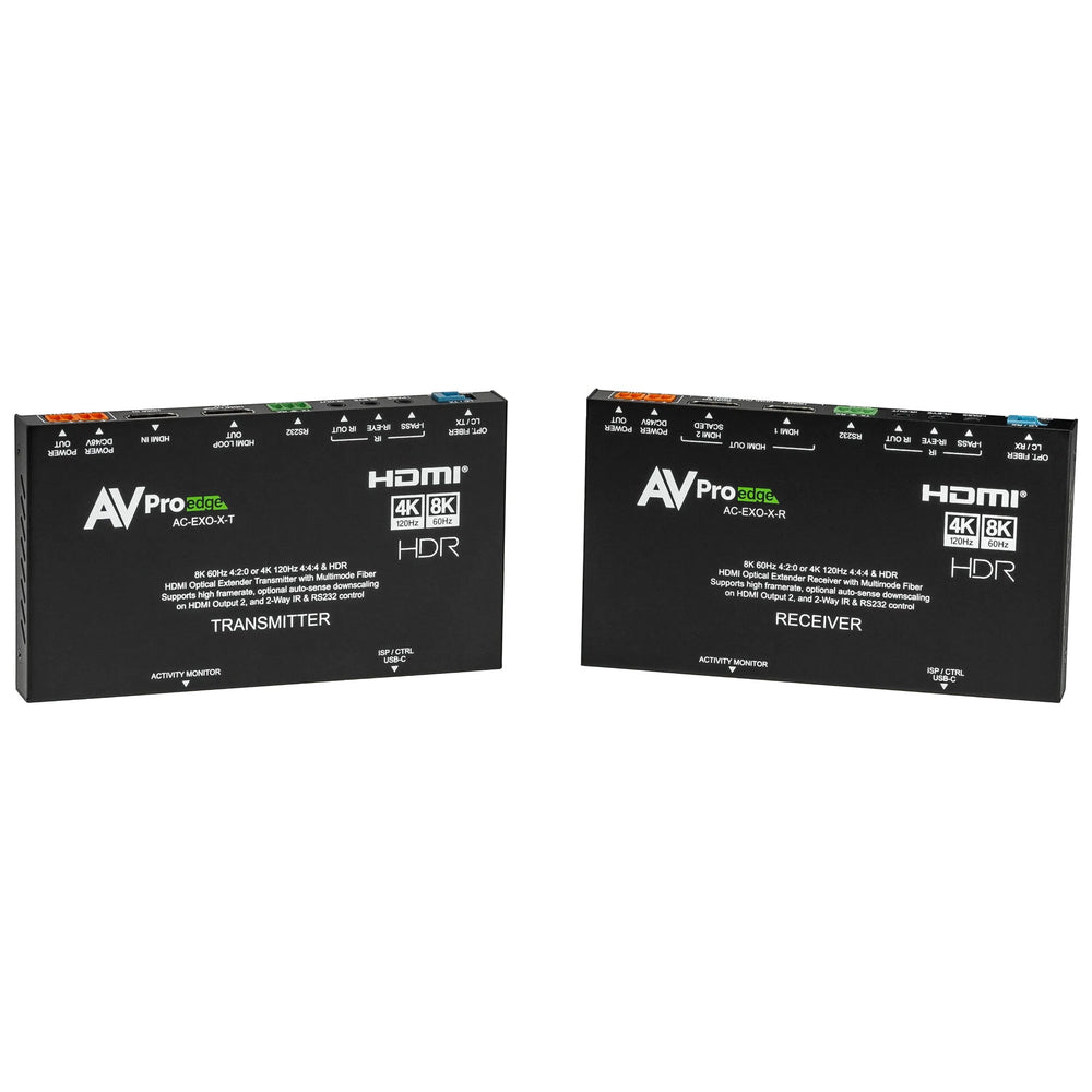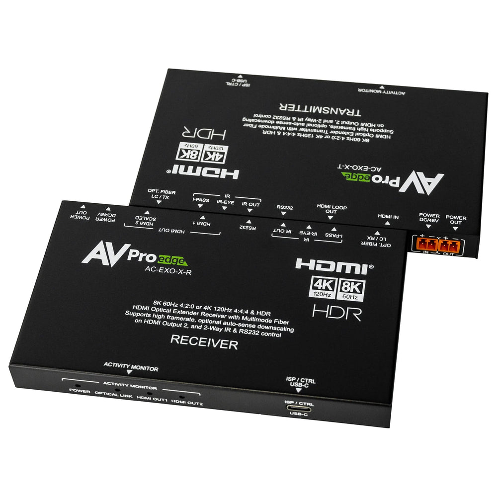 The AVPro Edge AC-EXO-X-KIT is a 40Gbps HDMI 2.1 fiber optic extender kit built for high bandwidth 8K and high frame rate 4K signal extension over multi-mode fiber. It is designed to preserve original image fidelity for demanding Pro AV and NextGen AV installations. Use it to extend HDMI video, audio, and control signals with near-zero latency performance.