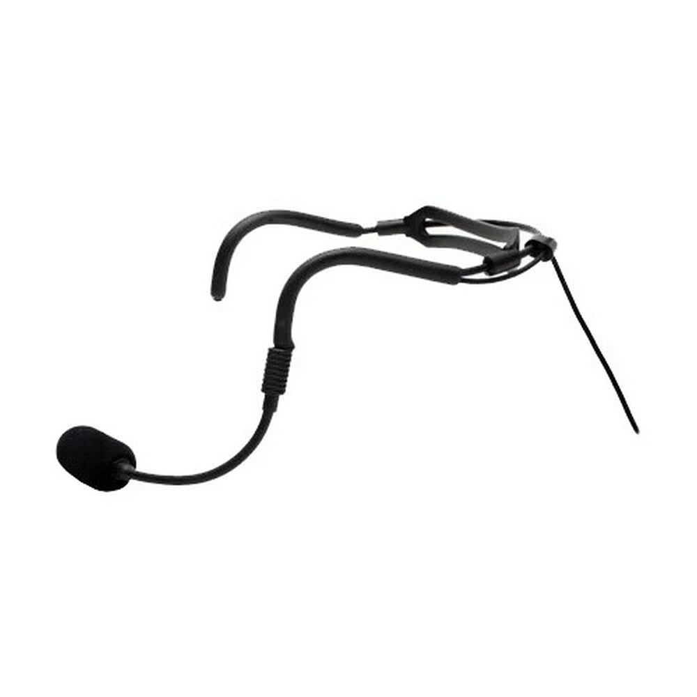 The microphone features a noise reducing bi directional condenser element that helps isolate the users voice in loud environments while minimizing ambient interference. A secure metal headband coated for comfort keeps the unit in place during activity. The attached wired cable provides a stable connection for systems compatible with Galaxy Audio and AKG wiring formats, supporting dependable audio performance throughout the session.