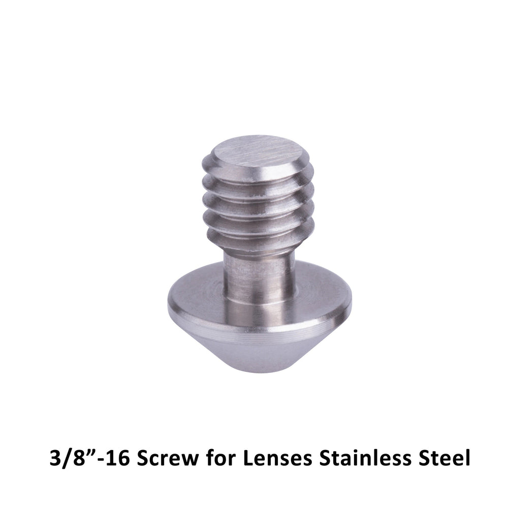 This mounting screw features a 3/8-16 thread and is driven using a 5/32" hex key for precise tightening. It is commonly used with ProMediaGear lens plates and camera support accessories that require a robust mounting solution.