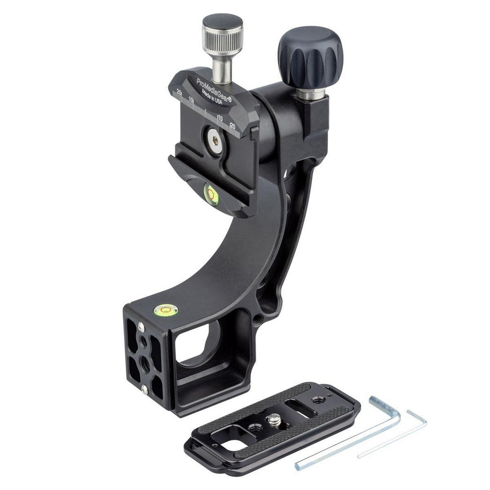 The ProMediaGear GT2 Tomahawk is a second generation add-on gimbal attachment designed to pair with compatible ball heads for smoother tracking and improved long lens control. It provides a stable gimbal style support option for photographers using telephoto lenses who want easier panning and tilting control.