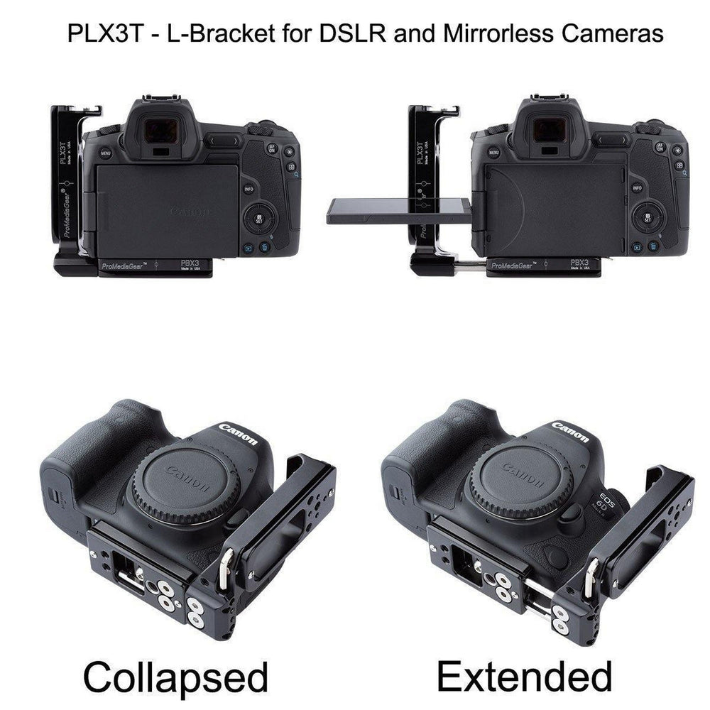 ProMediaGear PLX3TQD Universal Arca-Swiss L-Bracket for DSLR and Mirrorless Cameras with Articulating LCD Screens