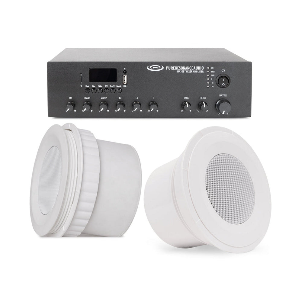 Pure Resonance Audio Auxiliary Area Sound System with (2) C5 4-Inch 70V Ceiling Speakers, and MA30BT 30W Bluetooth Mixer Amplifier