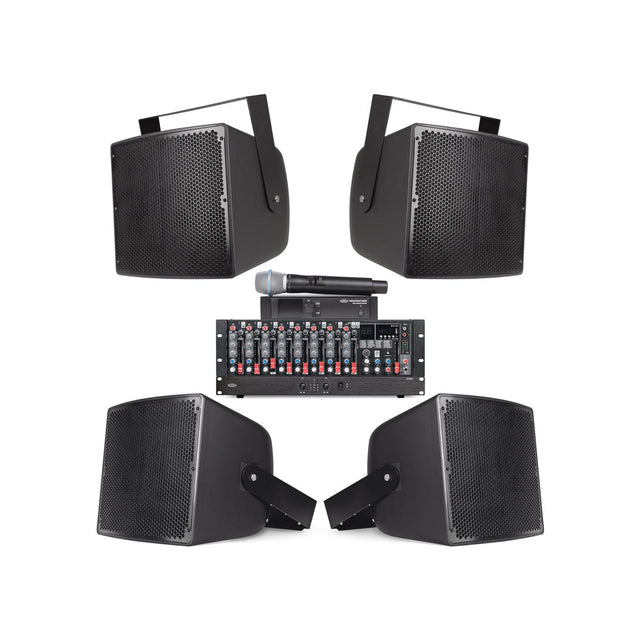 Pure Resonance Audio Gymnasium Speaker System with (4) S12 12-Inch All-Weather Speakers, MX9 Mixer, LA21000 Power Amplifier, and WMS1-HH Wireless Handheld Microphone