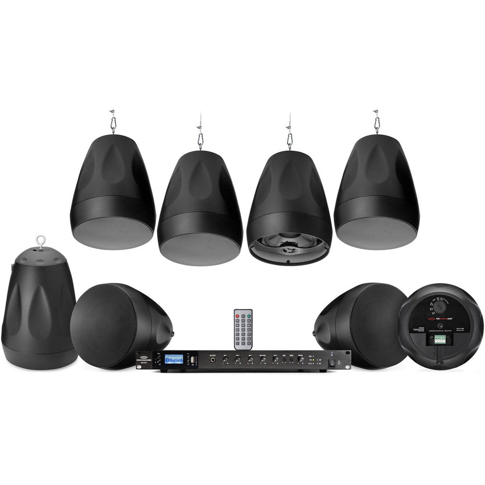 Enhance your restaurant, bar, café, or open-architecture venue with a complete audio solution designed for clarity and reliable performance. This system features eight acoustically matched 6.5" pendant speakers engineered for open-ceiling environments, delivering consistent coverage and high-quality background music throughout your space.