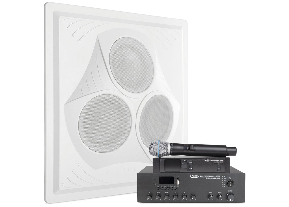 Pure Resonance Audio School Speaker System with VCA8 Vector Ceiling Tile Speaker, MA30BT Bluetooth Mixer Amplifier, and WMS1-HH Wireless Handheld Microphone