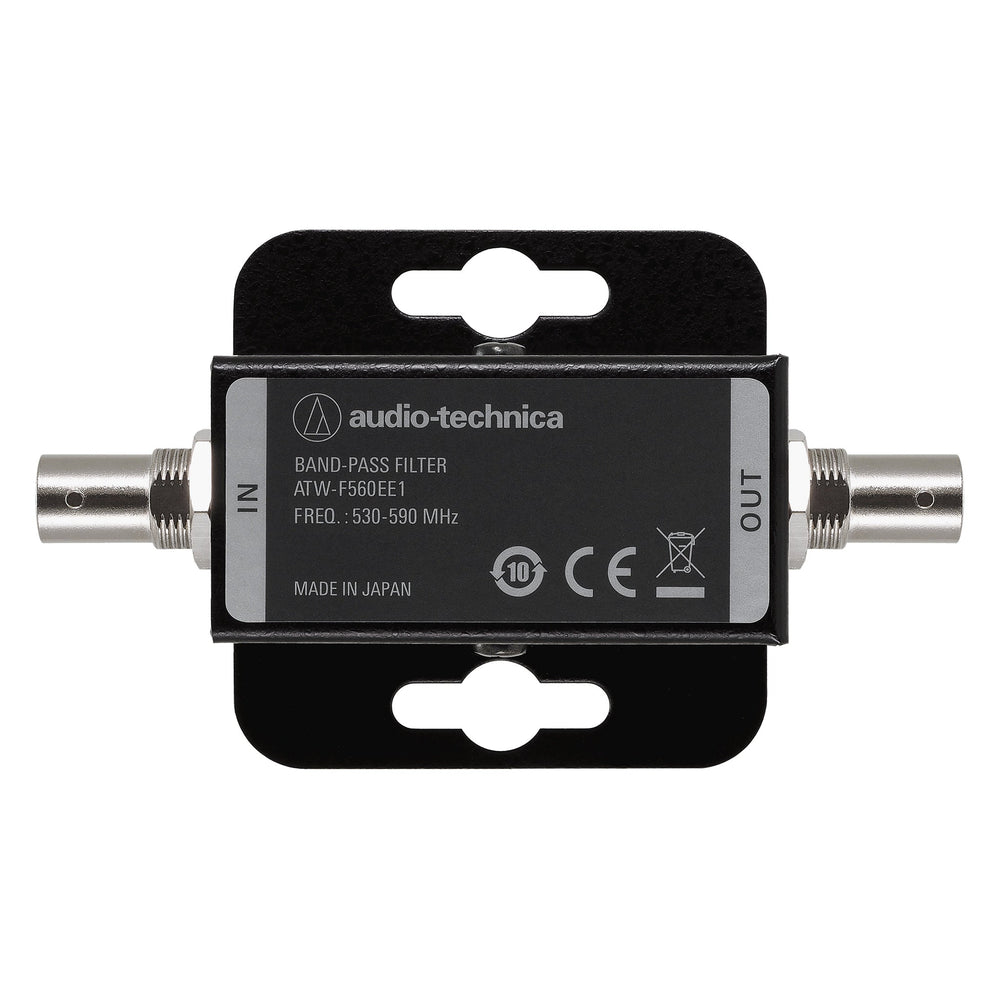 The Audio-Technica ATW F560EE1 is a passive band-pass filter pair designed to eliminate out-of-band interference in wireless microphone systems. It operates in the 530 to 590 MHz frequency range and is intended to reduce noise and unwanted RF signals outside the selected band. The filters require no power or tuning, making them simple to incorporate into your RF signal chain.