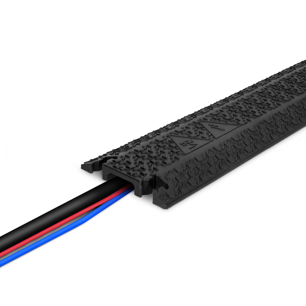 The DEFENDER XPRESS cable protector is ideal for indoor and outdoor use at the likes of exhibitions, trade fairs, shopping centers, stages, studios, offices, and more. The cable protector measures 40 x 12 mm, making it suitable for a wide variety of cables and hoses. The dimensions mean that, for example, up to 5 microfon or power cables. With a load capacity of approx. 0.5 tonnes per 20 x 20 cm area, XPRESS cable protectors can support the weight of standard cars, trolleys, bicycles, wheelchairs, and pedestrians.