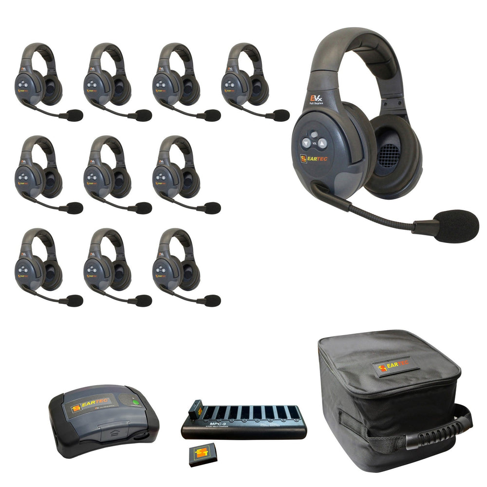 Eartec EVADE EVX11D-CM Full Duplex Dual Channel Wireless Intercom System with 11 Dual Speaker Headsets