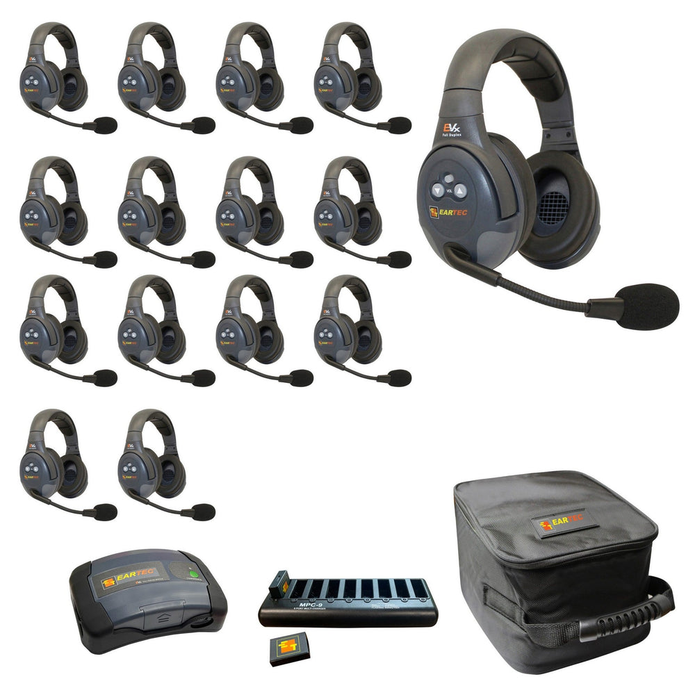 Eartec EVADE EVX15D-CM Full Duplex Dual Channel Wireless Intercom System with 15 Dual Speaker Headsets