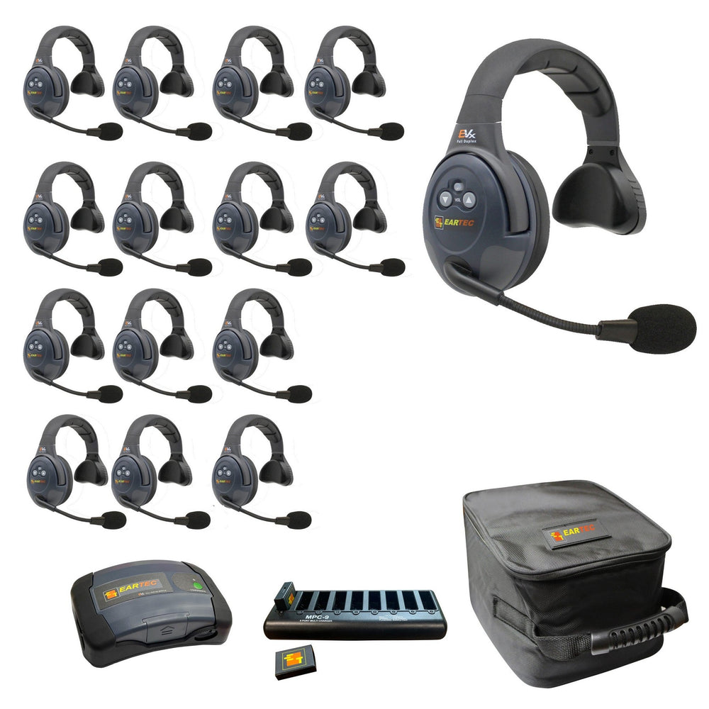 Eartec EVADE EVX15S-CM Full Duplex Dual Channel Wireless Intercom System with 15 Single Speaker Headsets