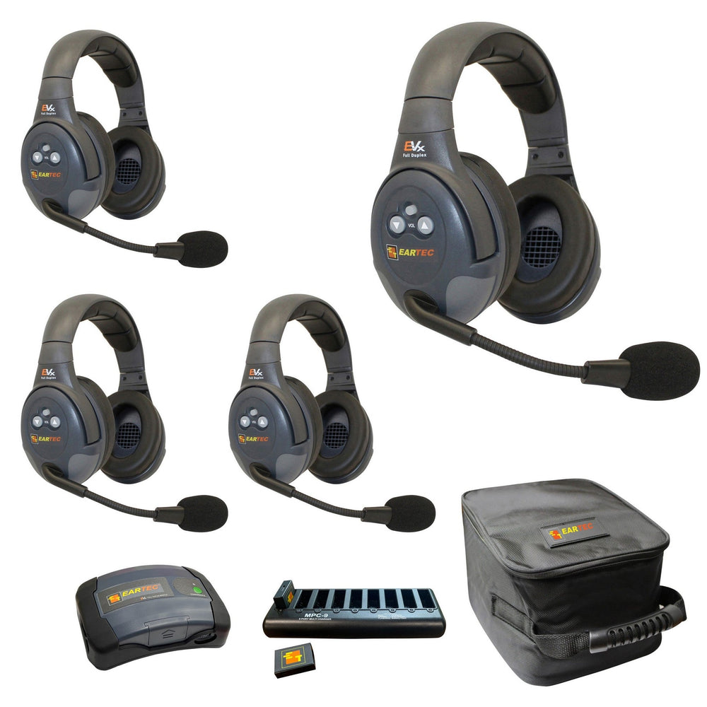 Eartec EVADE EVX4D-CM Full Duplex Dual Channel Wireless Intercom System with 4 Dual Speaker Headsets