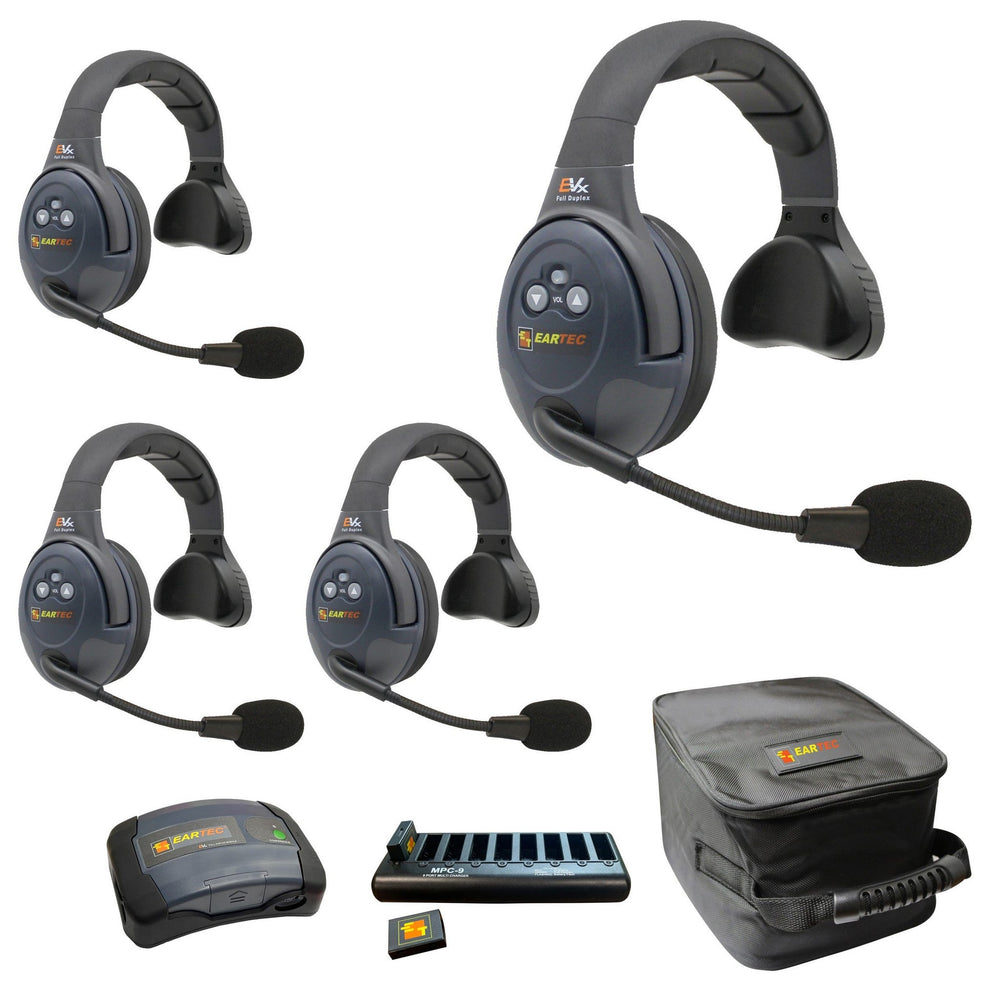 Eartec EVADE EVX4S-CM Full Duplex Dual Channel Wireless Intercom System with 4 Single Speaker Headsets