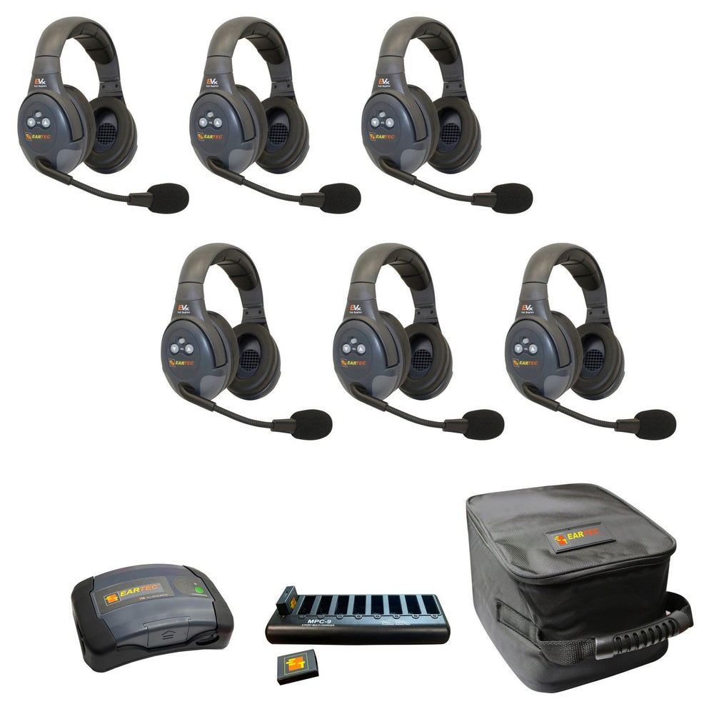 Eartec EVADE EVX6D-CM Full Duplex Dual Channel Wireless Intercom System with 6 Dual Speaker Headsets