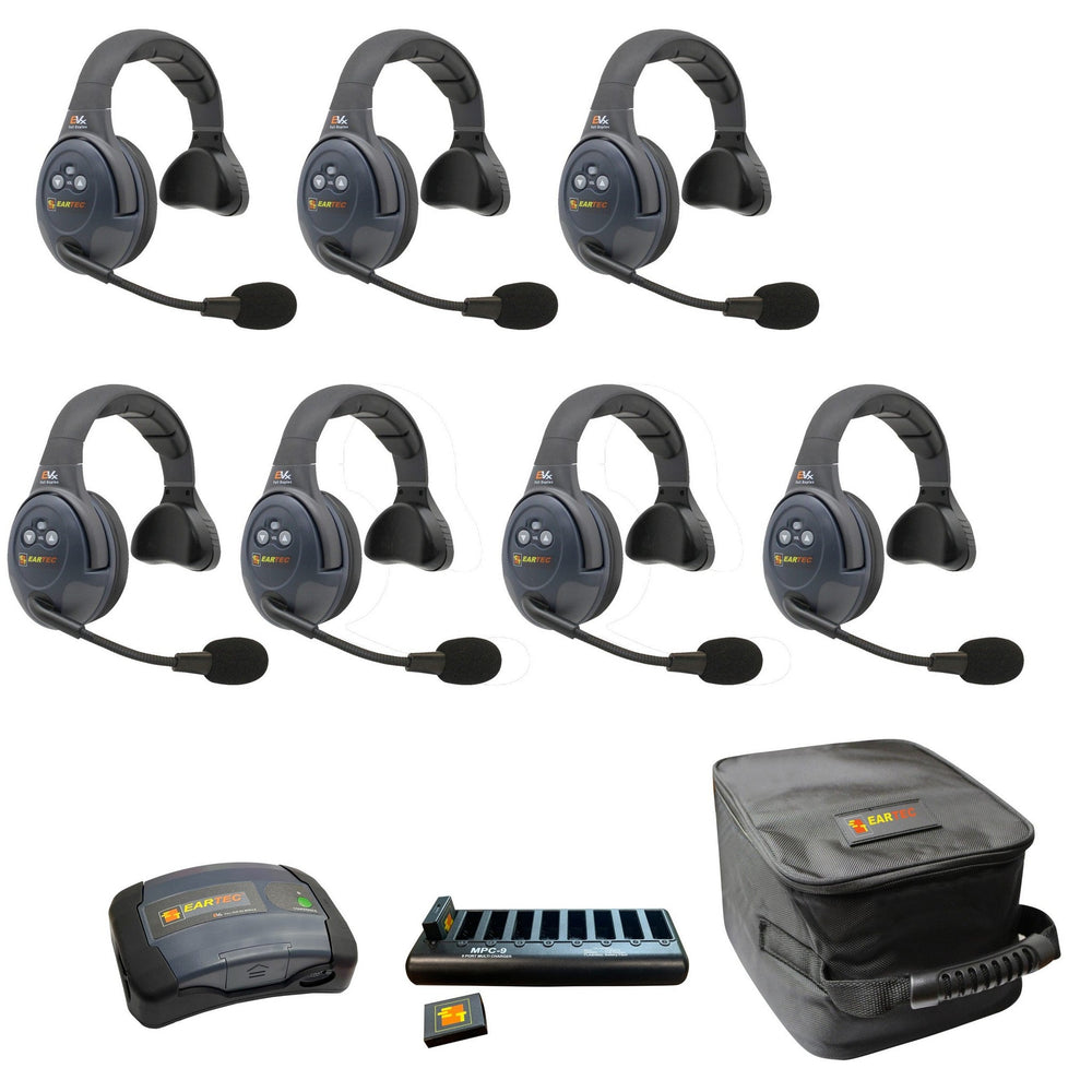 Eartec EVADE EVX7S-CM Full Duplex Dual Channel Wireless Intercom System with 7 Single Speaker Headsets