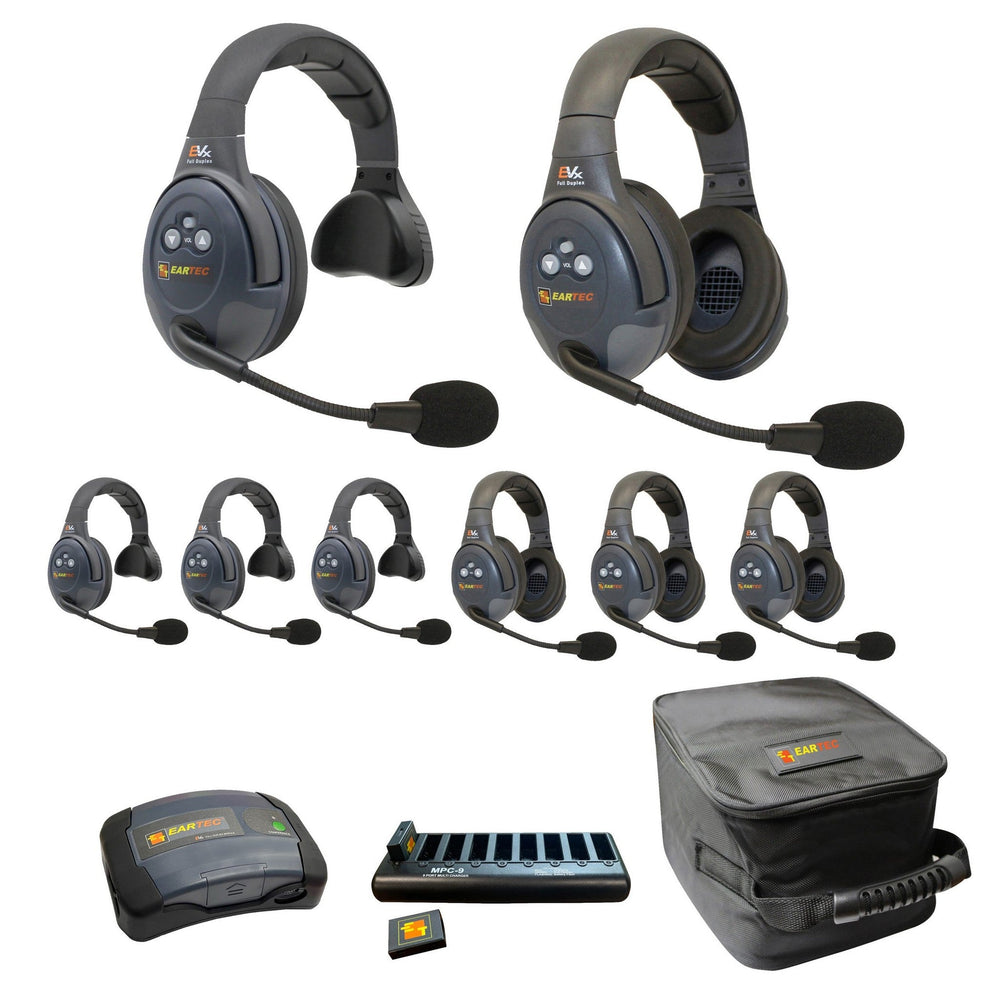 Eartec EVADE EVX844-CM Full Duplex Dual Channel Wireless Intercom System with 4 Single 4 Dual Speaker Headsets