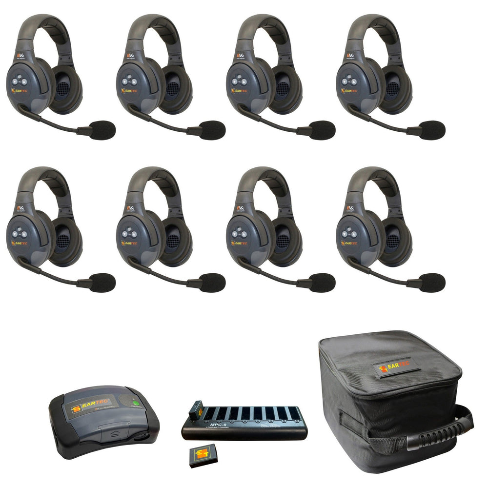 Eartec EVADE EVX8D-CM Full Duplex Dual Channel Wireless Intercom System with 8 Dual Speaker Headsets