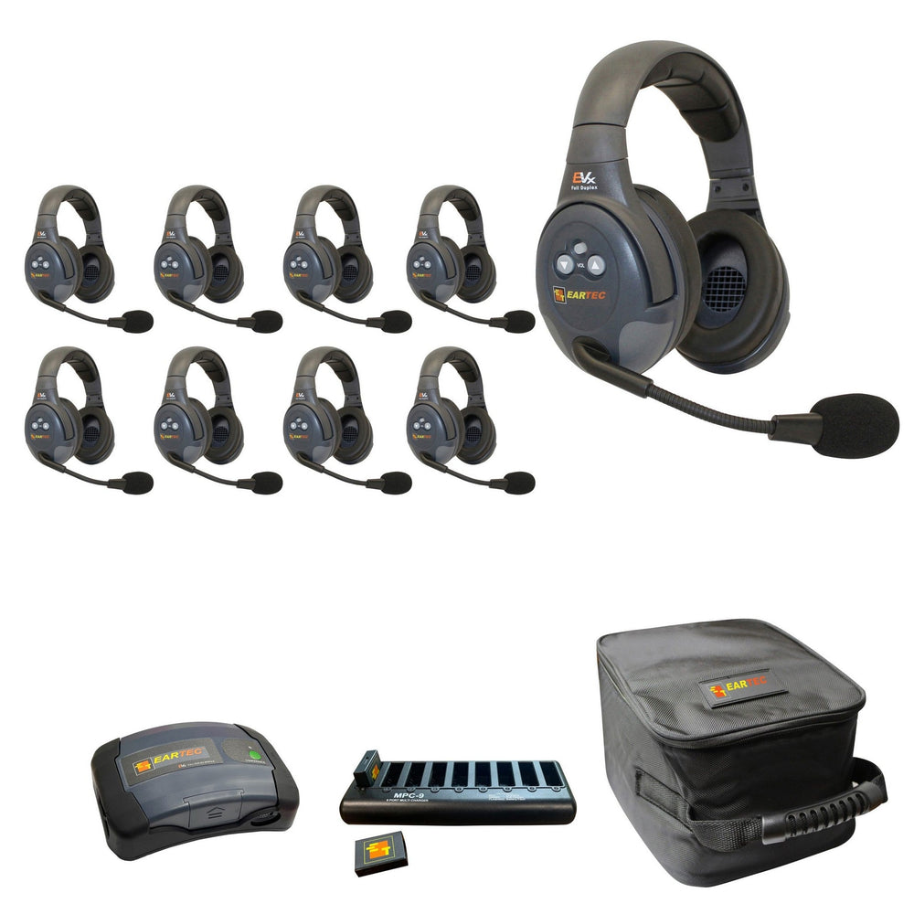 Eartec EVADE EVX9D-CM Full Duplex Dual Channel Wireless Intercom System with 9 Dual Speaker Headsets