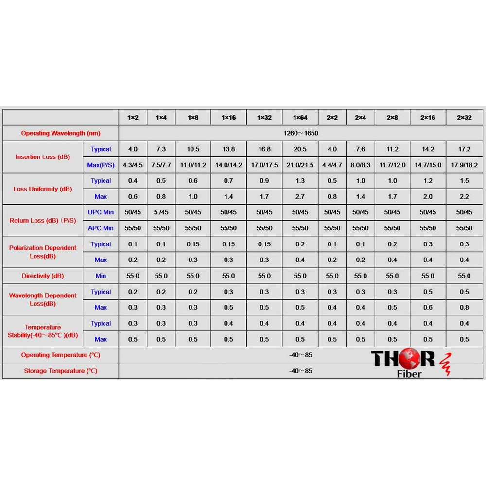 Built to deliver exceptional optical stability, the Thor F-PLC 1x8 Splitter is a reliable choice for passive optical networks, FTTH installations, and RF-over-fiber systems requiring high quality optical signal distribution.