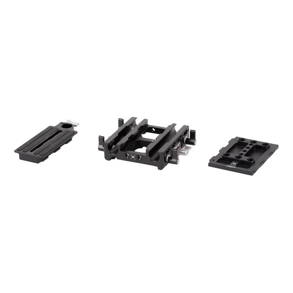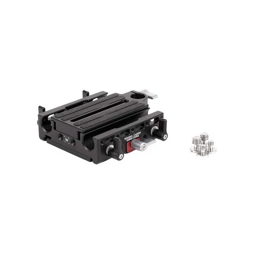 The Wooden Camera Unified Baseplate is a versatile quick-release support system engineered for professional cinematographers running Sony FX6, Rialto, Blackmagic URSA Mini, Mini Pro, and Mini Pro 12K cameras. It ensures 15 mm lightweight rod alignment at the correct lens height and includes a modular dual quick-release mechanism for swift camera transitions.