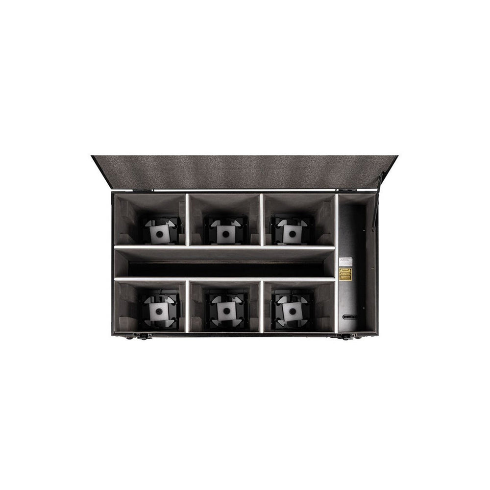 The ADJ ElectraPix Par 7 FC is a rugged, IP65-rated flight case engineered to house, transport, and charge up to six ElectraPix Par 7 LED fixtures. Designed for demanding production environments, it features integrated charging bases, a powerful 400 W power supply, and an IP65 locking power connection.