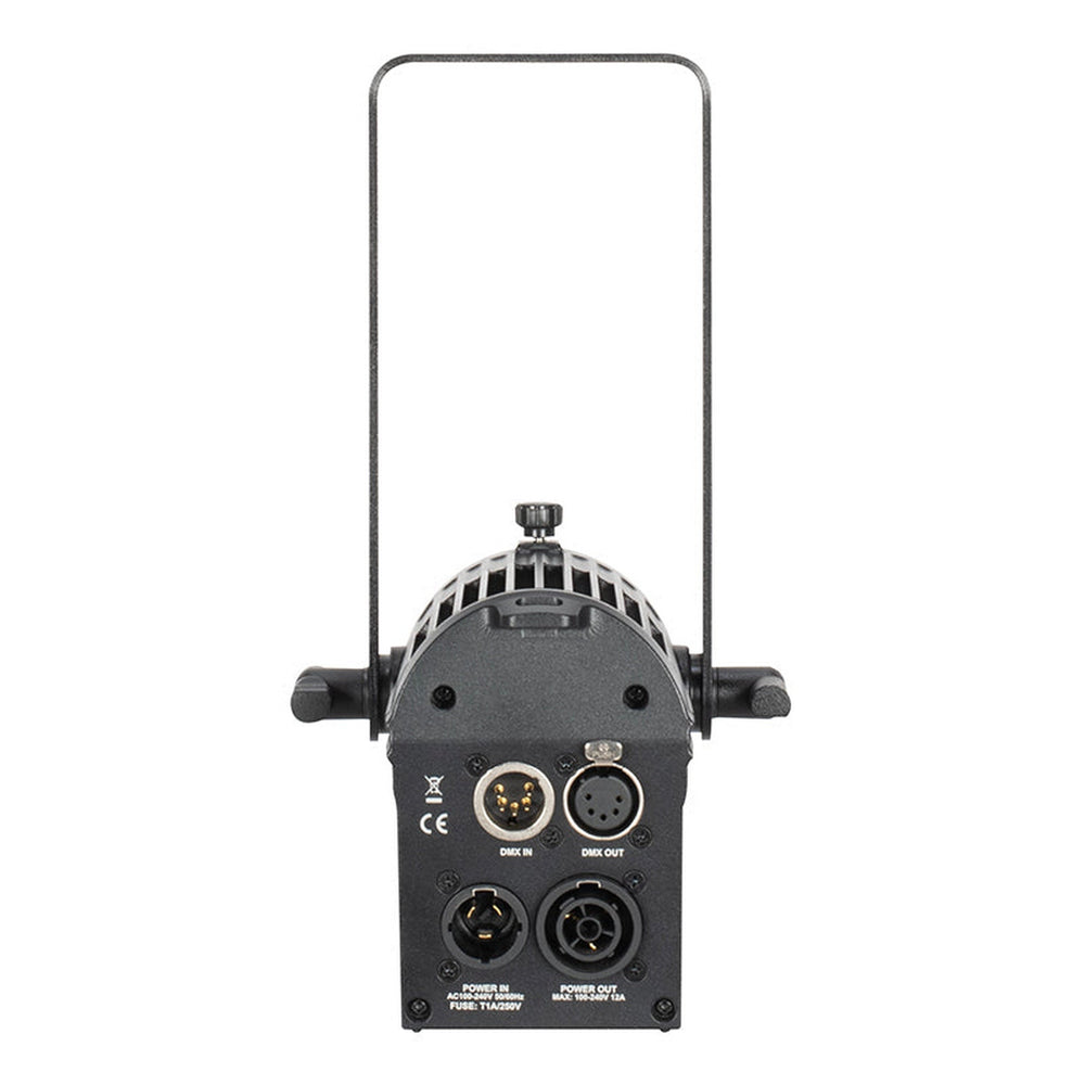 Equipped with a 40 W warm white LED engine producing 900 lumens at CRI > 98, it provides crisp, clean lighting with excellent color quality. The fixture supports gobo projection via its included “E” size gobo holder (gobos sold separately) and offers optional manual zoom lens accessories for beam shaping.