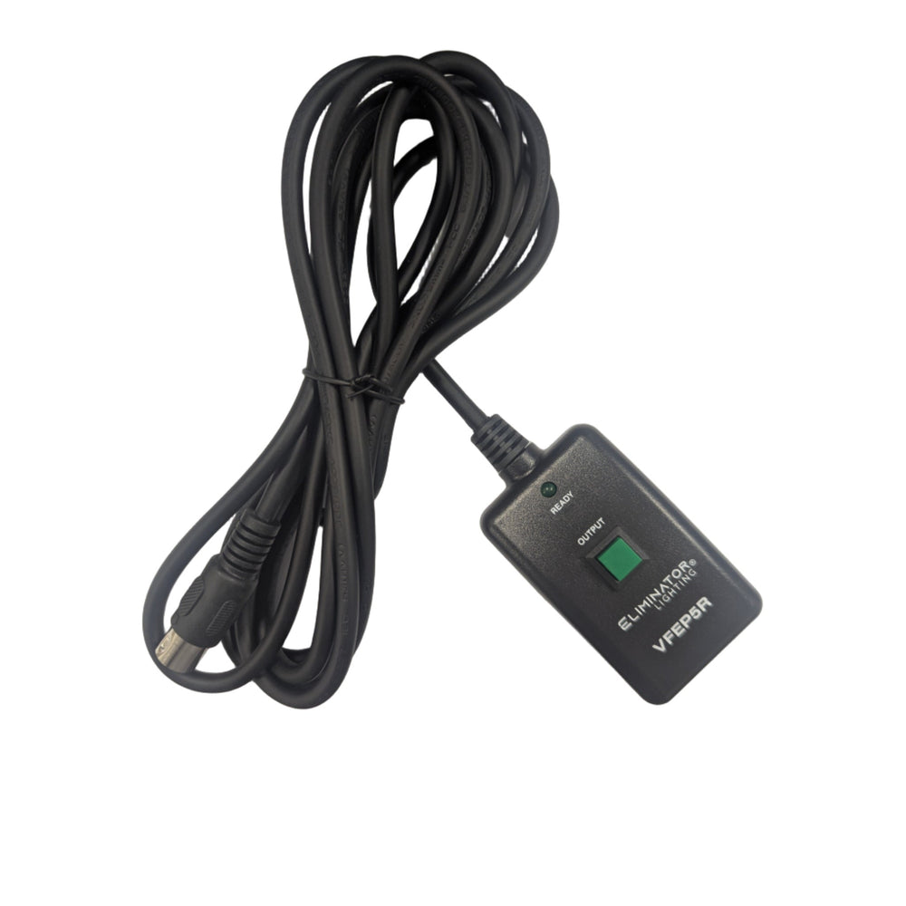 The ADJ VFEP5R is an official replacement wired remote control designed specifically for use with the Eliminator Lighting VF1100 EP and VF1300 EP fog machines. It enables convenient fog activation by connecting directly to the rear of the fog unit.
