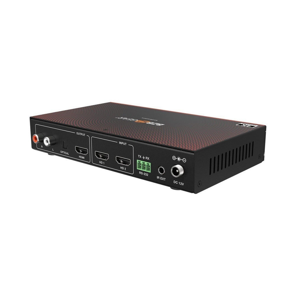 The 4K@60 2x1 Multiviewer Seamless UHD Video Switcher is designed to allow you to display multiple video sources at 4K resolution on a single screen. It combines two video signals and allows you to manage each input, create combinations of the two inputs, and adjust their positions on the display. Besides instant switching between 2 sources the BG-UHD-MVS21A has the ability to display the two video inputs in a Picture-in-Picture (PIP) or Picture-by-Picture (PBP) mode. In PIP mode, one of the video inputs is displayed as a small inset window on top of the other input, which takes up the majority of the screen. In PBP mode, the two video inputs are displayed side-by-side, taking up equal or partial amounts of screen space. Connectivity and Quality This device supports a wide range of input resolutions up to 3840x2160@60hz. It also could de-embed audio from any of the sources in different formats for your external audio system. Supported audio formats are LPCM, AC3, DD+, DTS, DTS- HD. User can control the volume of audio in LPCM format. Control Multiple control options are available for the BG-UHD-MVS21A. It can be controlled through the front panel buttons, an IR remote, or RS-232 commands. EDID control is available through the RS-232 interface.