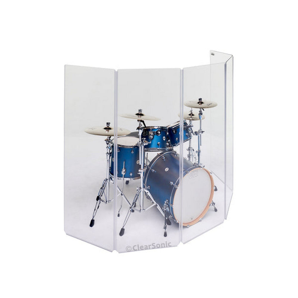 The ClearSonic A2466x5 is a professional-grade 5-panel acrylic drum shield designed to reduce sound bleed and provide acoustic separation in live, studio, and worship settings. Each panel is constructed from durable ¼-inch thick clear acrylic, offering both sound isolation and visibility. The panels are connected with full-length flexible hinges, allowing for easy setup and accordion-style folding for compact storage.