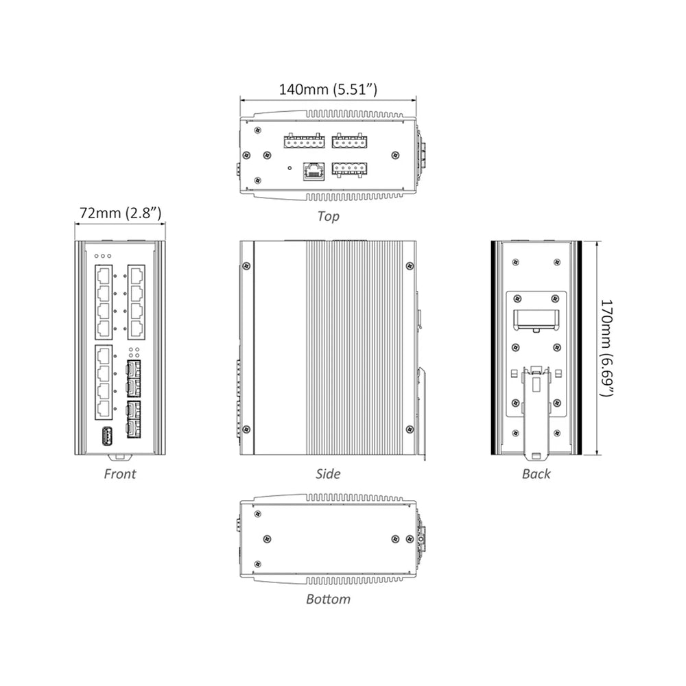 - 8 or 12 10/100/1000BASE-T(X) ports for High bandwidth connections