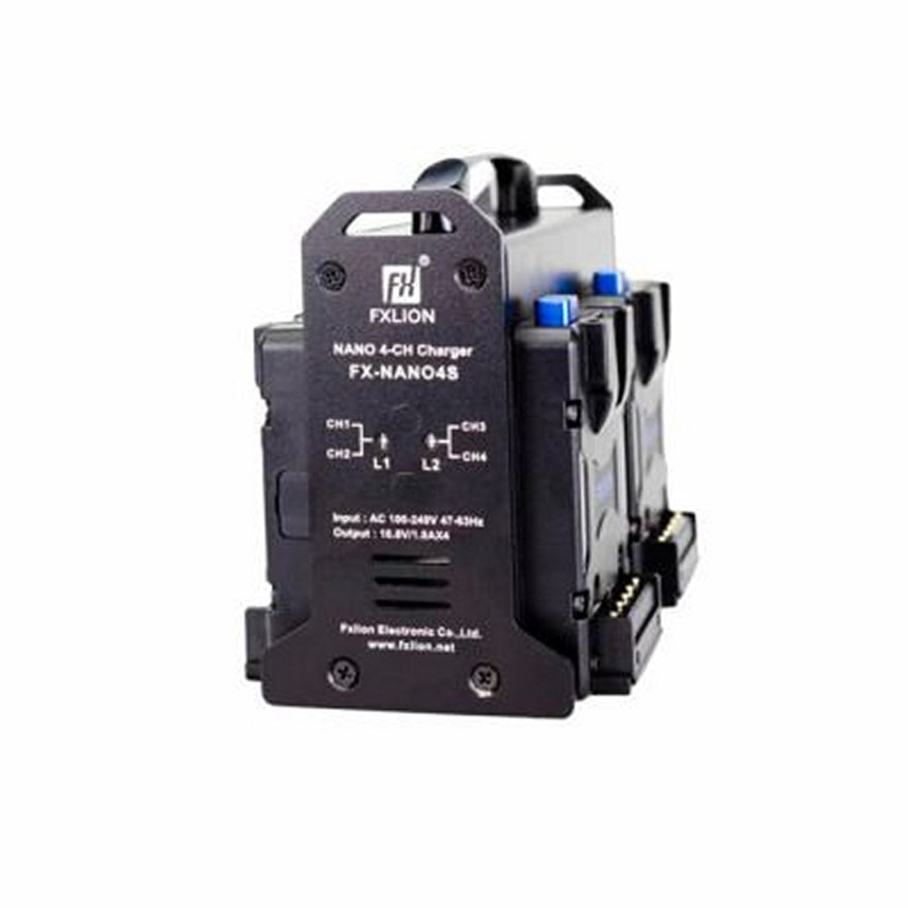 The Fxlion NANO 4-CH V-Mount Charger is a compact and lightweight charging solution specifically designed for the NANO battery series. This charger allows for simultaneous charging of up to four batteries, making it an efficient choice for professionals who need to keep their equipment powered. With a charging output of 1 Amp per channel, it ensures that all batteries are charged effectively without compromising on performance.