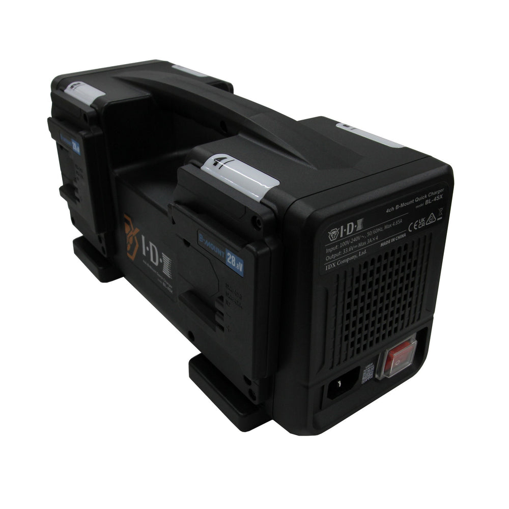 The IDX BL-4SX is a high-performance B-Mount battery charger designed to efficiently charge up to four HV-160B or HV-320B batteries simultaneously. With a robust 33.6V, 3A output per channel, it delivers rapid charging at up to 100W per slot, ensuring your batteries are ready for demanding production schedules.