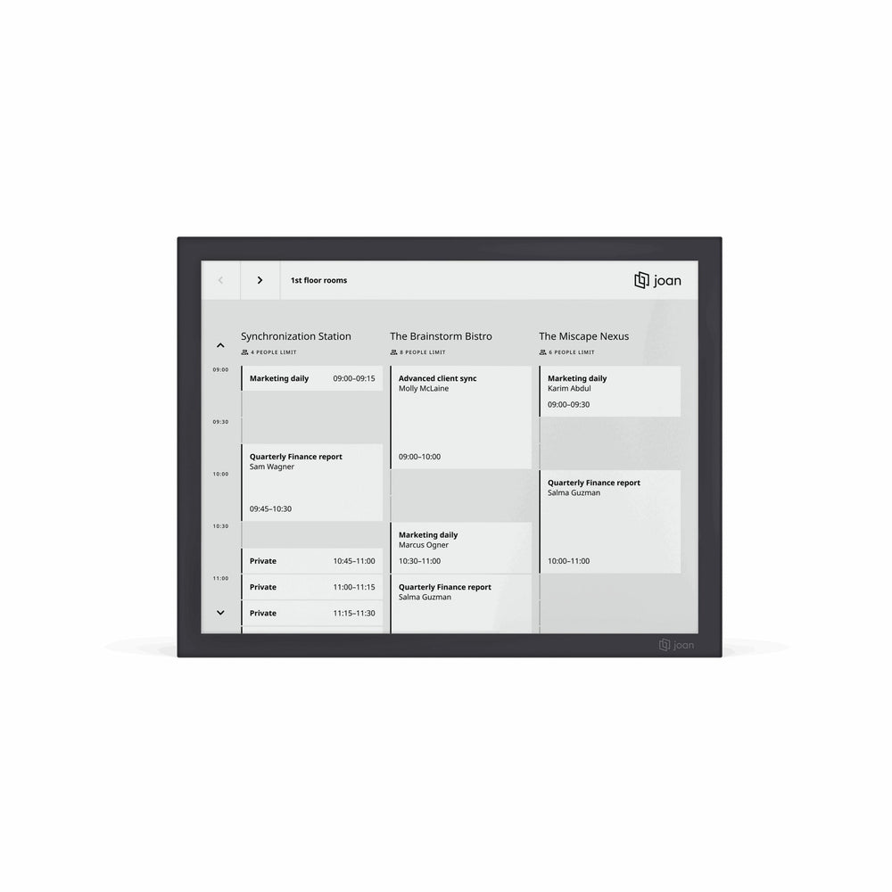 Joan 13 Pro Black Meeting Room Scheduler Display