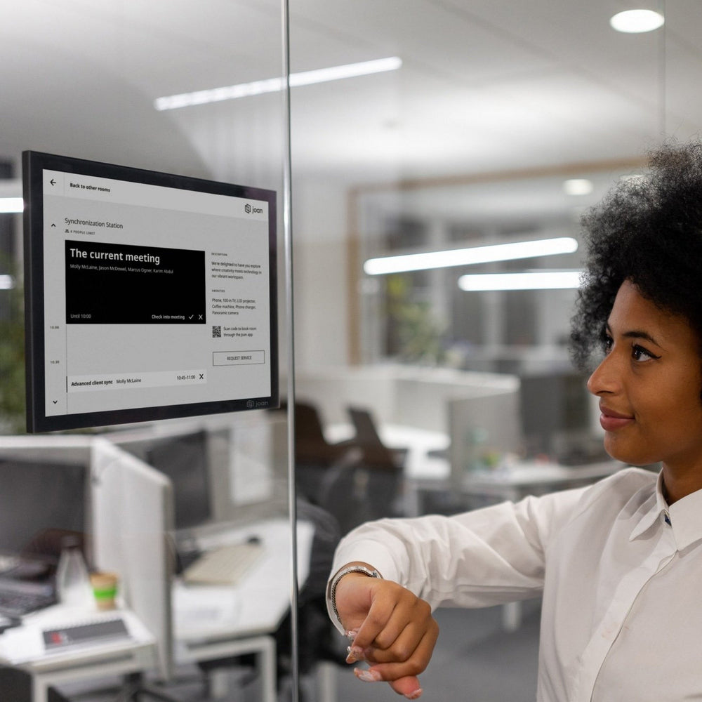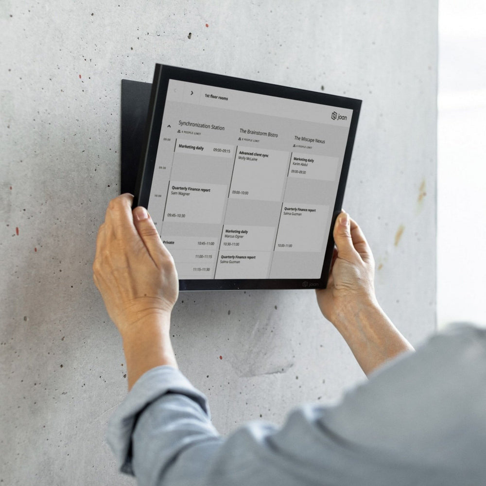 This multifunctional 13.3-inch touch e-Ink display enables real-time room overview and on-the-spot booking from a sleek, large-format interface.