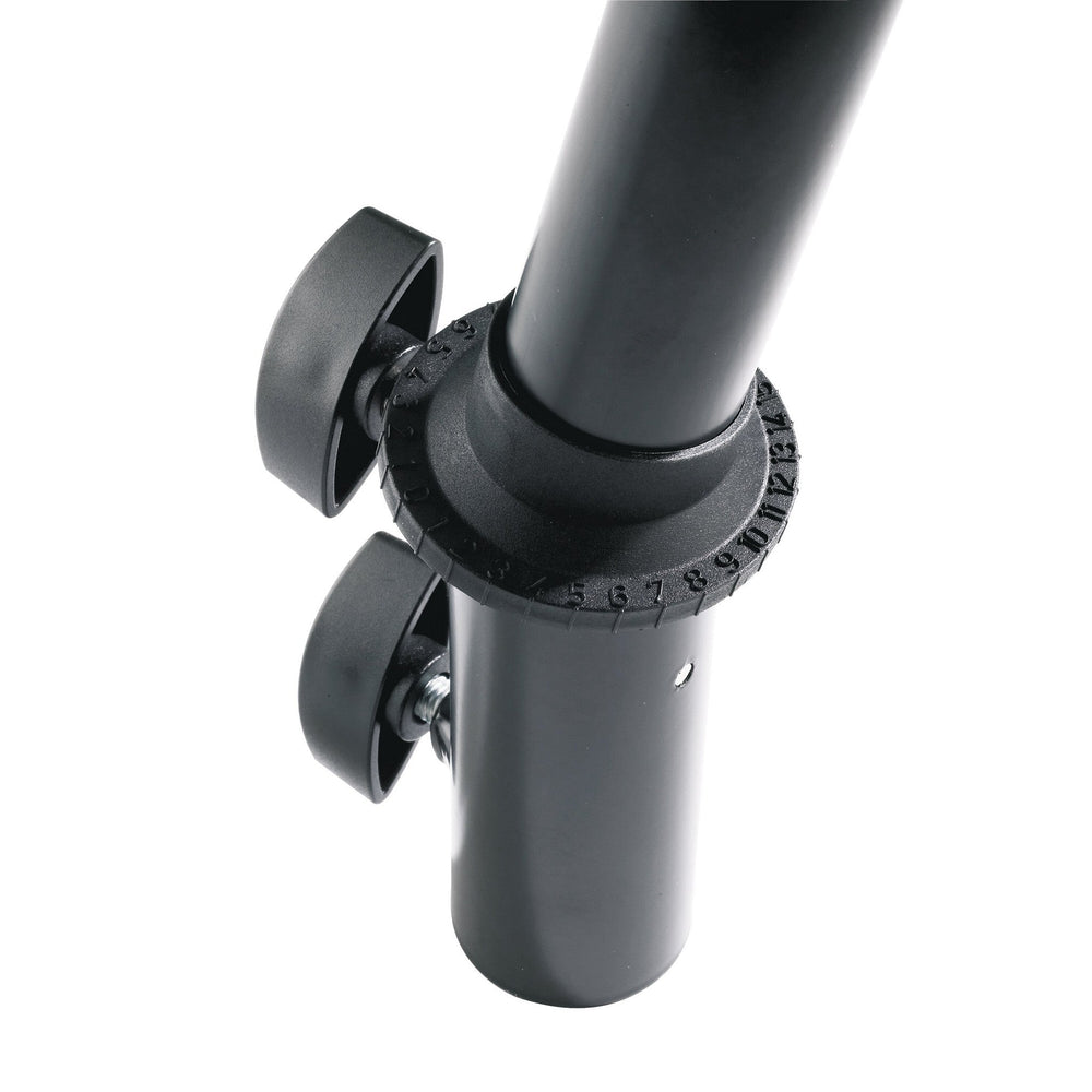 The 19670 Speaker Tilt Connector is a versatile accessory designed to facilitate the secure attachment of speakers to stands with a 35 mm tube diameter. Constructed from durable steel, this connector allows for variable angle adjustments up to 15°, enabling optimal speaker positioning for enhanced sound projection. The angle is secured by a locking screw, ensuring stability during use. This connector is suitable for speakers with a maximum load capacity of 25 kg, making it an essential component for professional audio setups.Key Features