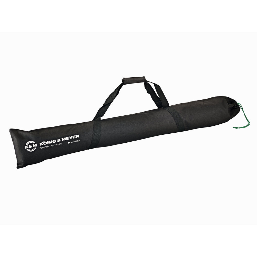 The K&M 21422 Carrying Case is a durable and practical solution for transporting and storing your K&M 21420 speaker or monitor stands. Crafted from black waterproof nylon, this case ensures your stands are protected from moisture and environmental elements during transit. Its robust construction is designed to withstand the rigors of frequent use, making it an essential accessory for musicians, audio engineers, and event professionals who require reliable equipment transportation. Featuring two internal compartments, the K&M 21422 allows for organized storage of two stands, preventing them from scratching or damaging each other. The compartments are equipped with draw-string closures, ensuring your stands remain securely in place while on the move. Sturdy handles provide comfortable carrying options, facilitating easy handling during setup and teardown. The sleek black design, complemented by a silk-screened K&M logo, adds a professional touch to your gear ensemble.