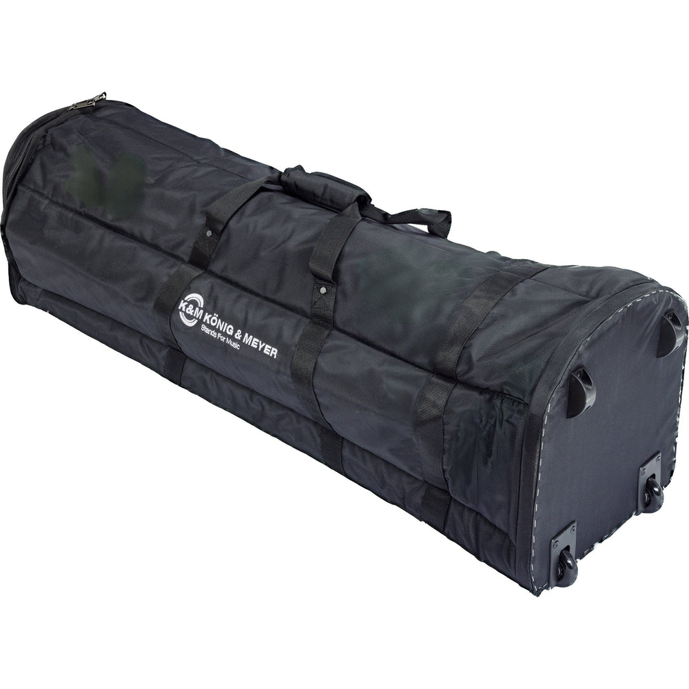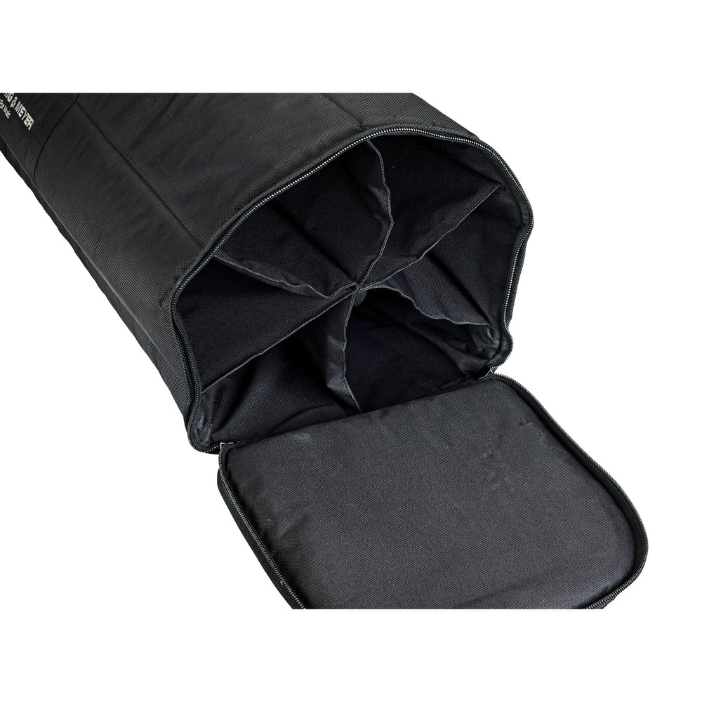 The K&M 21427 Carrying Case »Select« is a professional-grade solution designed for musicians and audio professionals seeking a reliable method to transport up to six microphone stands. Constructed from extremely durable 1680D nylon fabric, this case ensures your equipment remains protected during transit. The high-quality, hand-stitched seams add to its robustness, making it a long-lasting investment for your gear. For ease of mobility, the case includes built-in castors, allowing for smooth and comfortable transport, even when fully loaded. The padded carrying handles provide additional comfort, ensuring you can carry your stands without strain. A durable zipper secures your equipment, preventing any accidental openings during movement.Inside, the case features separate compartments for each stand, preventing scratches and damage by keeping them securely in place. This thoughtful design ensures that your microphone stands remain in pristine condition, ready for use at any time.