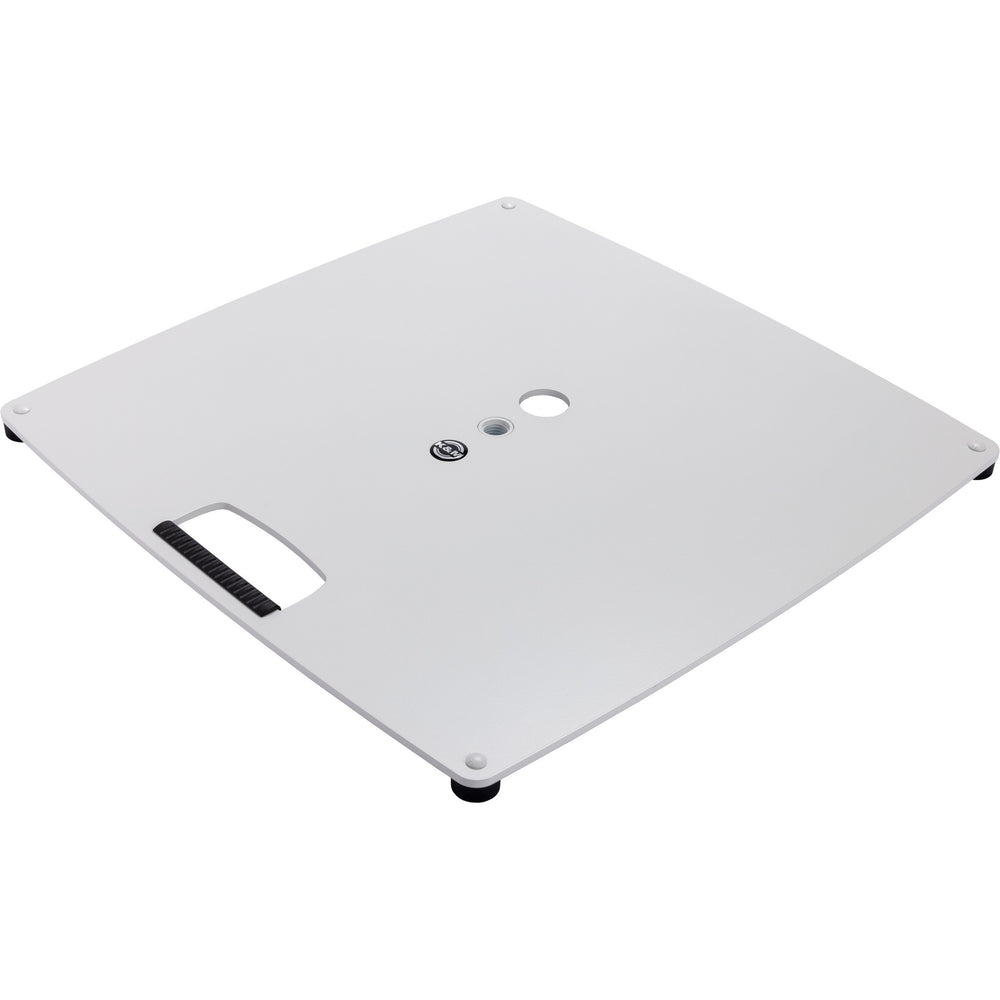 The K&M Base Plate L is a robust and heavy-duty steel base plate designed for use with all standard distance rods and rod combinations featuring M20 threaded bolts. Its solid construction provides a stable and secure foundation, making it ideal for professional applications in speaker and lighting setups. The ergonomic carrying handle allows for effortless transportation, while the integrated cable management system ensures a clean and organized setup. Four sturdy rubber feet offer enhanced stability and surface protection, minimizing vibrations and unwanted noise. With a durable structured black finish, this base plate delivers both reliability and a sleek, professional look.