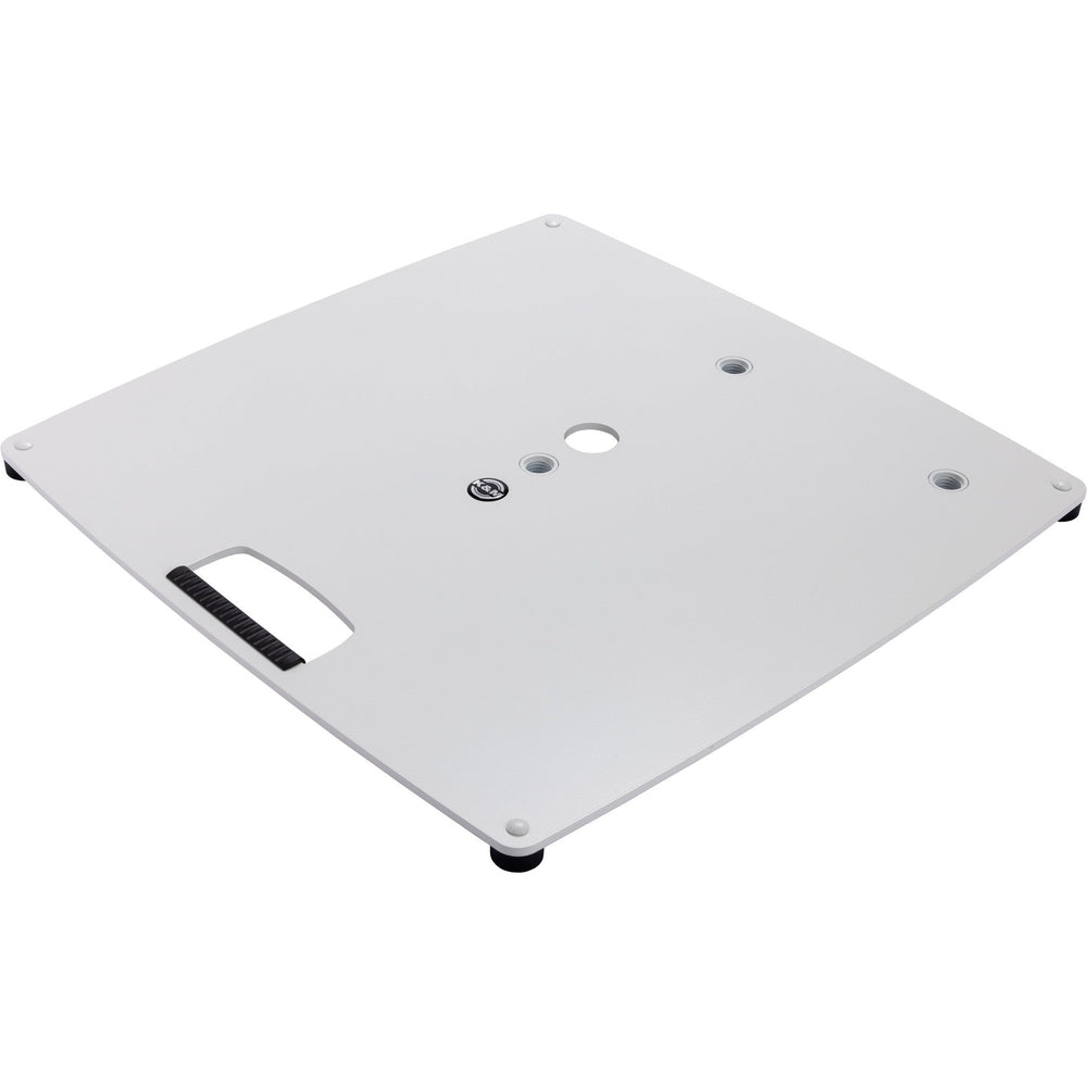 The K&M Base Plate L - 3 x M20 is a heavy-duty steel base plate designed for stability and versatility in professional speaker and lighting setups. Featuring three M20 threaded connector positions, this plate allows for multiple mounting options, accommodating various distance rod configurations. The flat steel construction ensures a solid foundation, while an ergonomic carrying handle makes transport effortless. An integrated cable management system keeps setups tidy and organized. Additionally, four durable rubber feet help minimize vibrations and prevent unwanted surface damage. Finished in structured black, this base plate offers both durability and a sleek, professional appearance.
