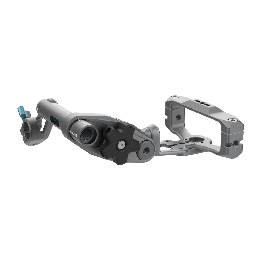 This Cine Mount Kit includes everything you need for stable mounting, including a 15mm Rod (3.9" long) with an integrated clamp and bubble line level. The rod block, spaced 2.4" apart, is designed for easy, precise adjustments with a single knob. This mount allows you to position the LiDAR system above or below the lens, optimizing focus assist functionality. Ideal for both professional film productions and independent projects, the Kondor Blue DJI LiDAR Cage with Cine Mount ensures your LiDAR system stays securely aligned for accurate data capture.