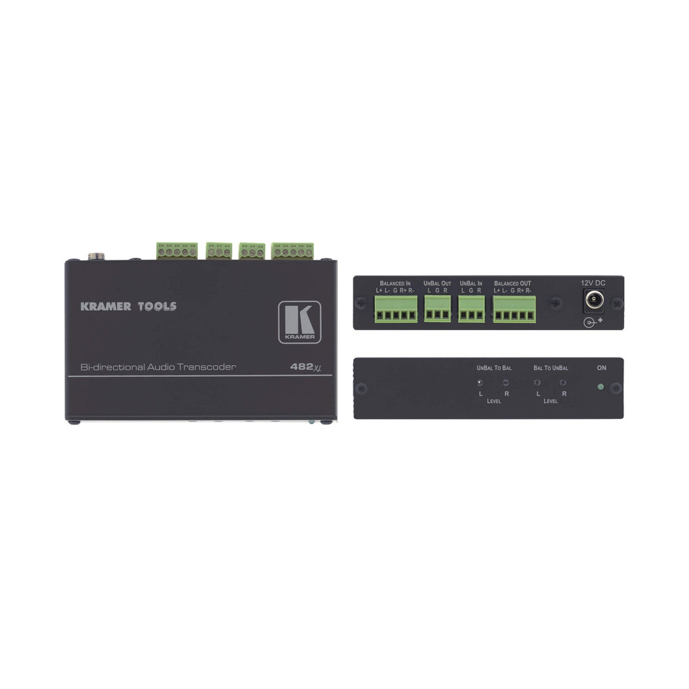The Kramer 482XL is a compact, bi-directional audio transcoder that simultaneously converts between balanced and unbalanced stereo audio signals. With independent level controls for left and right channels, it provides precise adjustment and flawless signal integrity.