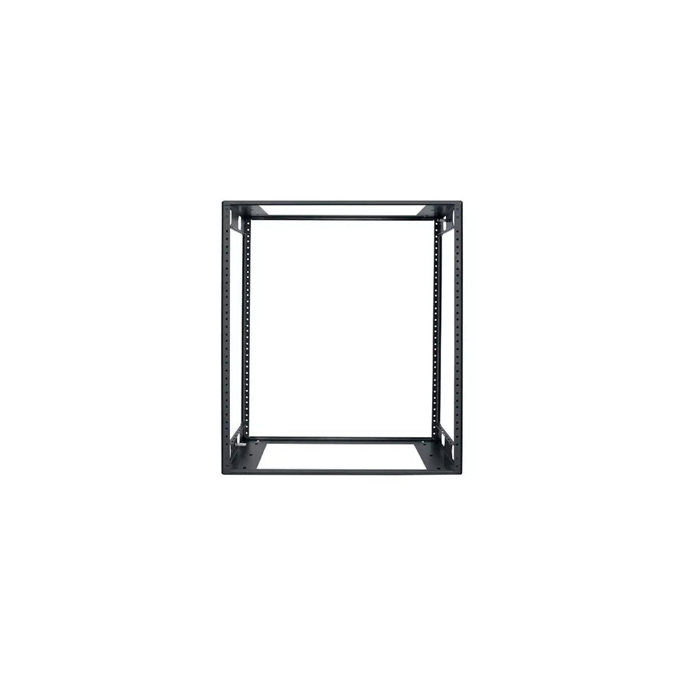 This open frame rack is designed with practicality in mind, featuring corner post mounting rails that are tapped 10-32, and punched for clean wire tie-off. The smooth black powder epoxy finish not only provides a sleek appearance but also protects against wear and tear. With a load capacity of 250 lbs, this credenza rack is perfect for a variety of electronic setups, ensuring that your equipment is securely housed and easily accessible.