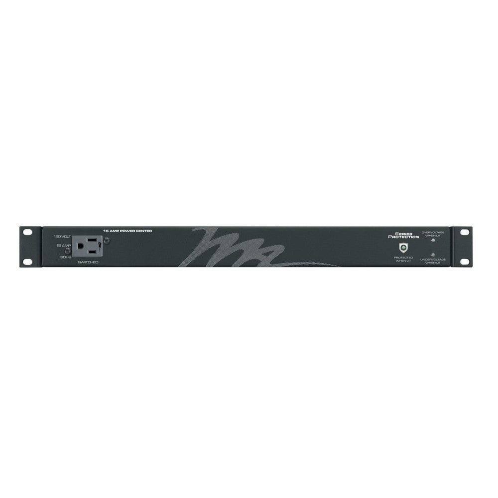 Series Protection power distribution unit shall be Middle Atlantic Products model # PD-915-SP, with a 15 Amp power capacity. Series Protection power distribution unit shall operate on 120-volt AC/60Hz current. Series protection shall be Rackmount. Series Protection shall be 1.735” H x 19” W X 9.43” D. Series Protection shall include 9' 14/3 SignalSAFE power cord with NEMA L5-15P plug. Series Protection shall include 8 rear outlets, 1 front outlet. Series Protection power distribution shall have both over AND under-voltage cutoff and shall automatically restore power once event has passed. The over voltage cut-off threshold shall not exceed 135 VAC. The under-voltage cut-off threshold shall not be lower than 100 VAC. Series Protection power shall be 100% free of MOVs. Series Protection power shall have a rated capacity (not peak operating capacity) of 15A. Series Protection power distribution shall have a black powder coat finish. Series Protection shall be RoHS EU Directive 2002 / 95 / EC Compliant. Rackmount power strip shall be ETL Listed to UL standard 1283 and 1449, 3rd Ed. in the US and to CAN/CSA C22.2 #8, ed. 4 in Canada. Series Protection power distribution shall be manufactured by an ISO 9001 registered company. Series Protection power distribution shall be warrantied to be free from defects in materials and workmanship under normal use and conditions for a period of 12 years.