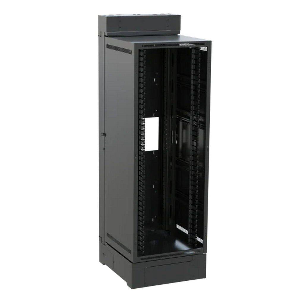 - Flexible cable entry access at the top, bottom and sides of the rack with additional knockouts for electrical box and fans