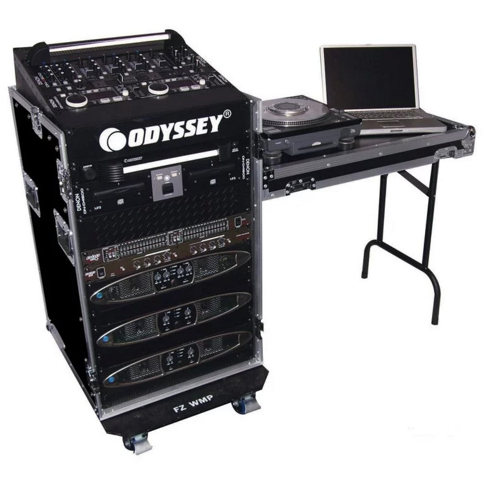 Odyssey FZ1116WDLX 11U Top Slanted 16U Vertical Pro Combo Rack with Side Table and Casters