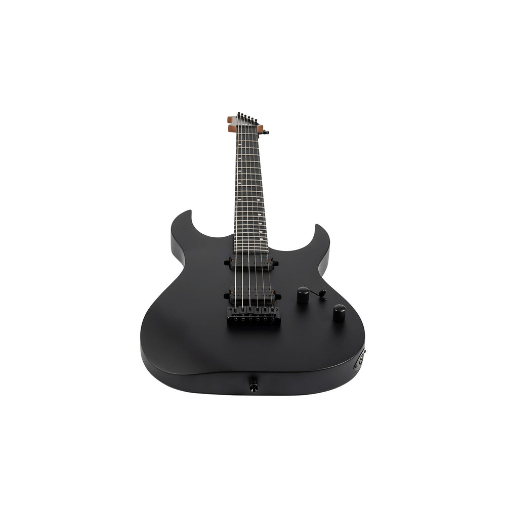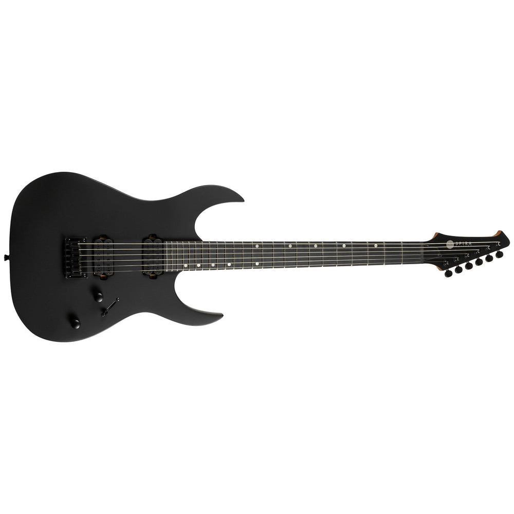 The Spira S-400 MBK is equipped with a set of custom-made Spira Villain pickups, delivering a powerful 12k output with ceramic magnets that ensure clarity and punch in every note. Whether you're playing heavy riffs or delicate melodies, this guitar can handle it all with ease. The modern D shape of the neck and the hi-graded ebony fretboard with a 14″ radius provide a comfortable playing surface, allowing for effortless navigation across all 24 jumbo frets. With its fixed bridge and simple control layout of one volume and one tone knob, the S-400 MBK is designed for musicians who appreciate straightforward functionality without sacrificing tone quality.