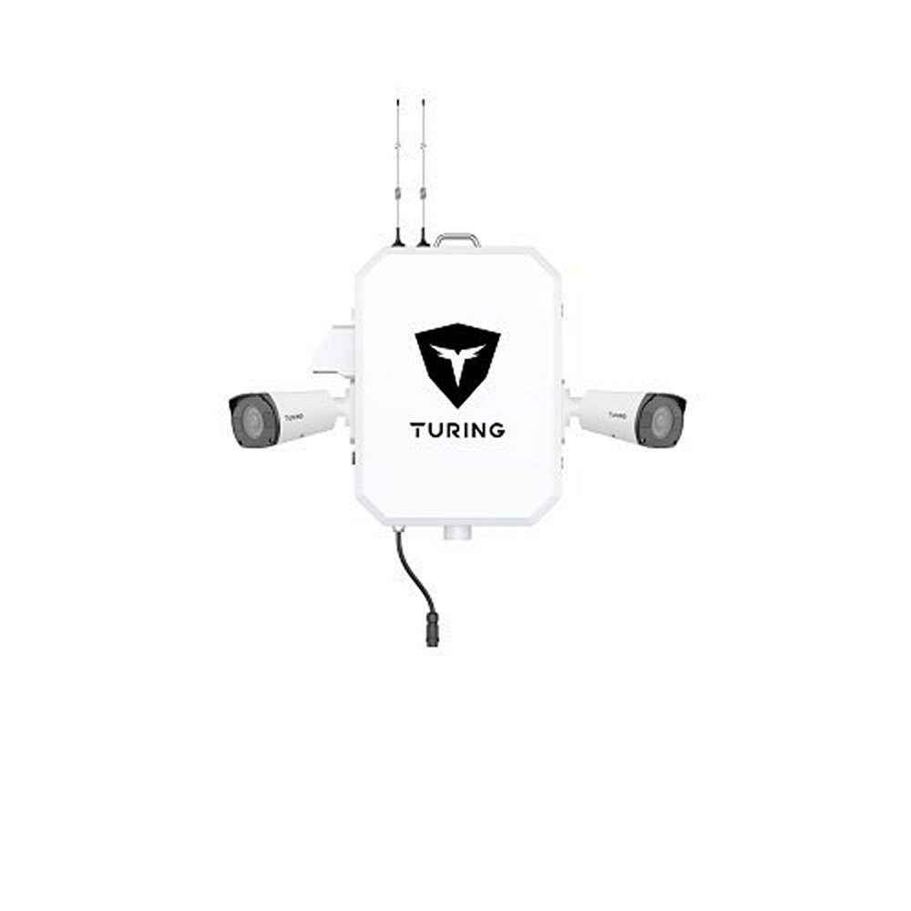 The Turing SkyShield Standard Outdoor Surveillance System is a versatile, all-in-one solution designed for outdoor video surveillance. It comes equipped with an enclosure system, including a built-in thermostat heater, fan, strobe lights, and 4G router. This system also includes two 4MP bullet cameras and a 4-channel NVR with 2TB HDD for recording. It supports multiple locations under one platform, features Core AI for advanced video analytics, and includes a 3-year warranty and eligibility for hardware upgrades.